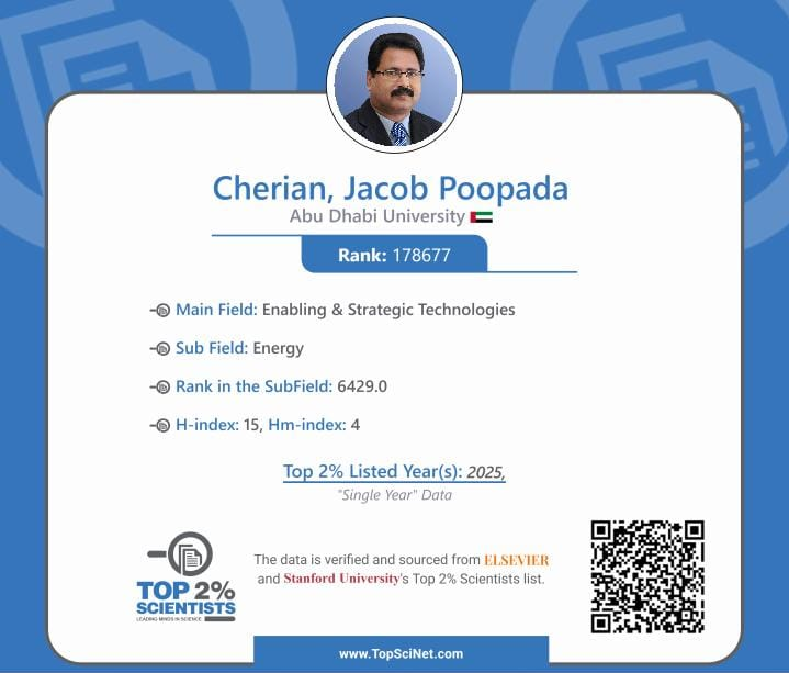 Cherian, J. P, Suja Pradeep, Sobhith Mathew Jose, Midhun M. “Adapting Transit-Oriented Development (TOD) principles to the Urban Lifestyle of the UAE: Opportunities, Barriers and Policy Recommendations” Abu Dhabi University, AED 50,00.00. (15th January 2025 – 31st December 2026)